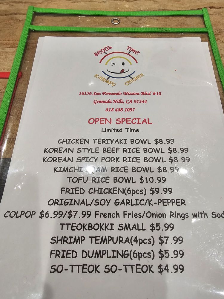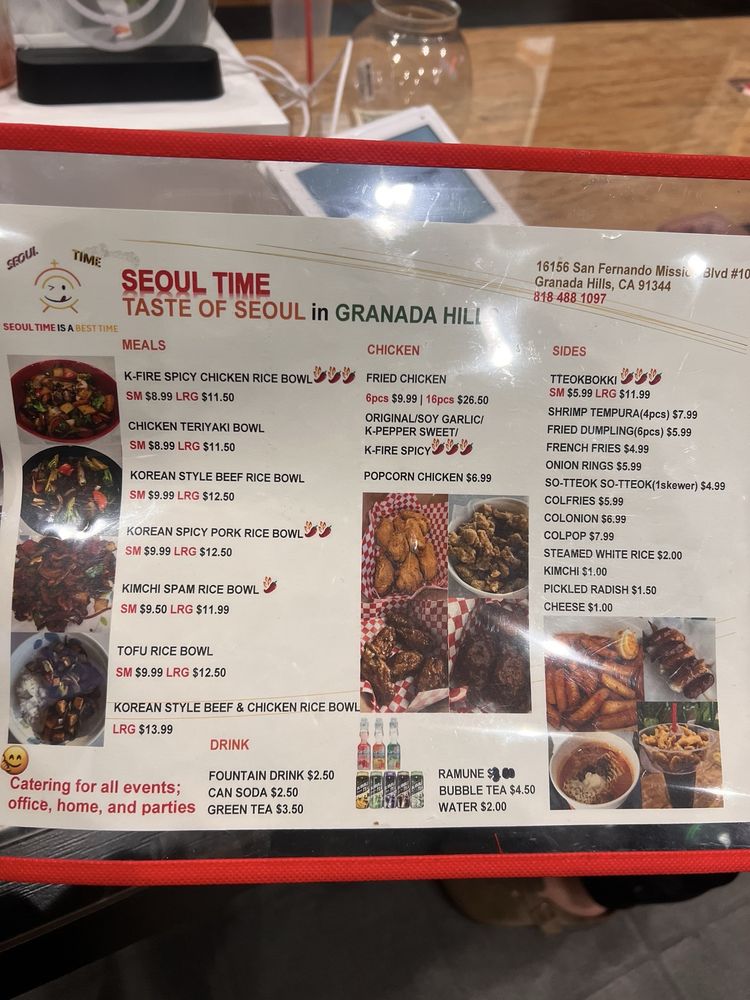 Seoul Time, located in Granada Hills, CA, is a haven for Korean comfort food lovers. The menu is designed for those craving a satisfying meal, featuring standout items like their crispy Korean Fried Chicken in flavors such as soy garlic, which has earned rave reviews for its perfect crunch and savory sweetness.